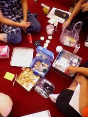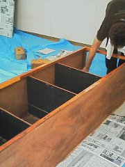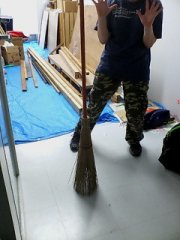 まず,舞台用の大道具はほとんど出来ているので,大道具の今日の作業は,「残る一ヶ所のケコミ作成準備」。そして他裏方ズは「化粧品や画材,テープなどの在庫確認」を行いました。